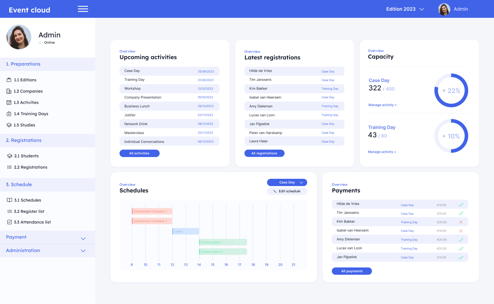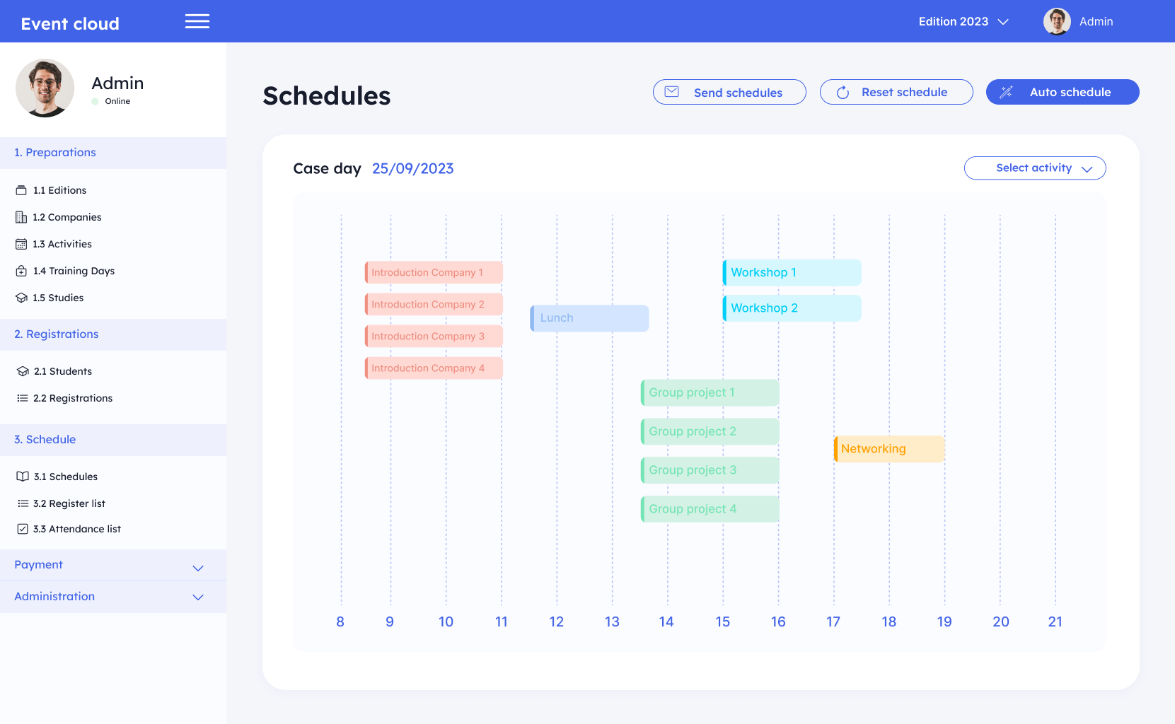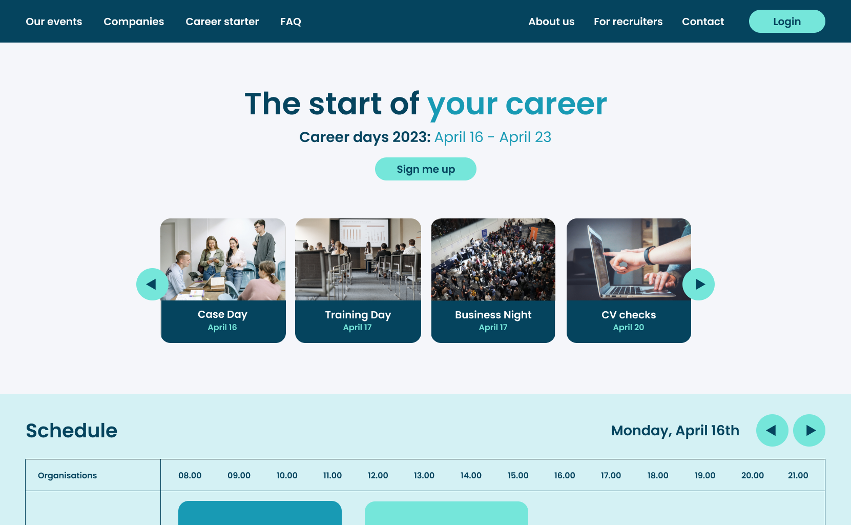 Professionalize your Career Event with our platform solution. Setup the event from óne CMS and benefit from unique Career Event features.